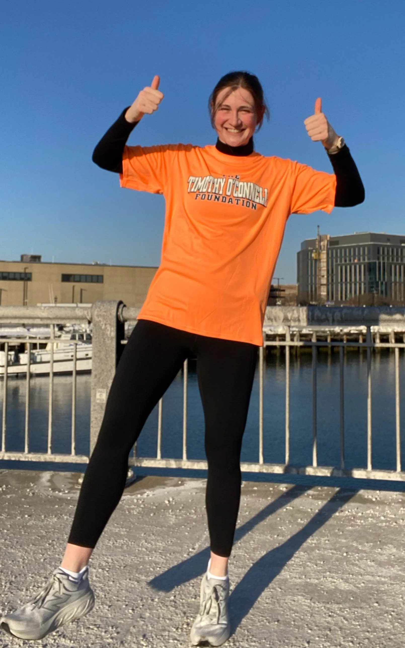 Katie is beyond excited to be running her first Boston Marathon and grateful to be doing so in support of the Timothy O'Connell Foundation! In the fall of 2025, Katie ran the Cambridge Half Marathon sporting the Tim's Team orange alongside Joanne and Christopher. Last spring, she was amazed by the tenacity of her boyfriend Matt and all the rest of the marathon runners who made 26.2 miles look easy! Katie enjoyed spending marathon day with Kevin, supporting the runners along the way. This year, however, Katie is thrilled to be on the route herself! Having been a lifelong runner, Katie has always dreamed of running a marathon. The opportunity to do so honoring Tim's memory and raising funds for the Timothy O'Connell Foundation is just the icing on the cake!