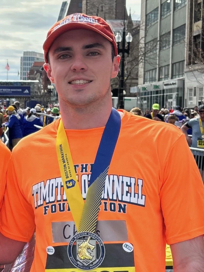 Chris O'Connell is running the 130th Boston Marathon as a member of Tim's Team in his second ever marathon, after running Boston last year. After four years as a collegiate rower, Chris has gotten off the water and is hitting the road in memory of his older brother, Tim. Having grown up watching the marathon every year, including in support of his mother Joanne and all the other Tim's Team runners, he is ready to get back out there to support the Timothy O'Connell Foundation alongside with his brothers and all of Tim's Team.